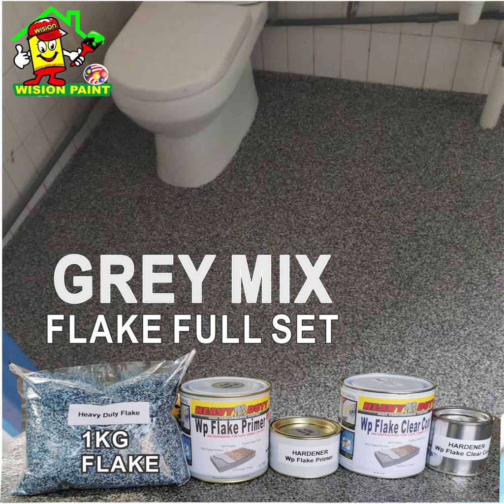 Grey Mix Full Set Epoxy Colour Flake Coating 1kg Flake 1l Primer 1l Clear Toilet Floor Slab Leaking Tandas Lantai Shopee Malaysia